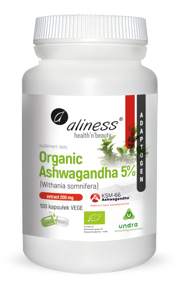 Aliness Organic Ashwagandha 5% KSM-66 200mg (100kap)